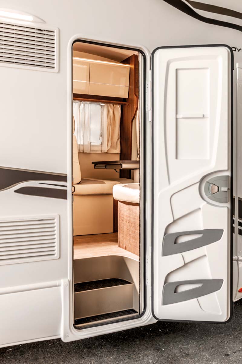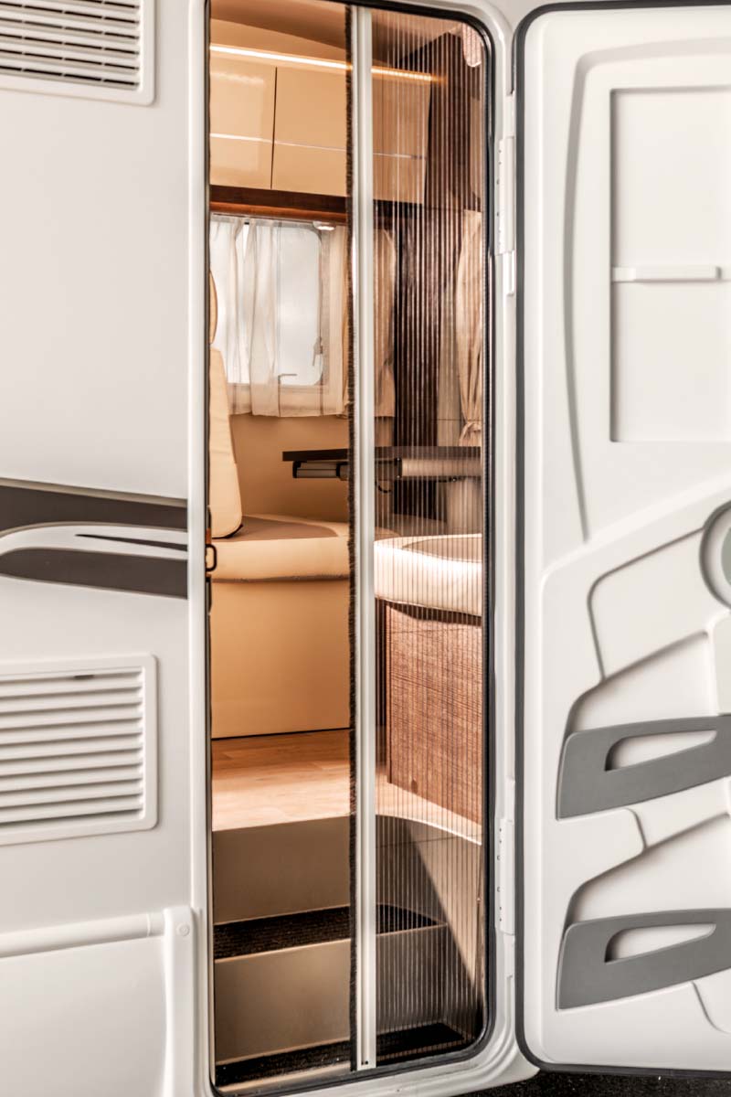Die großzügig bemessenen Stauräume sowie die einfach zu bedienenden, robusten und sicheren Easylock-Schlösser werden durch eine neue, leichtere und stärkere Glasfaserverkleidung geschützt. Auch die Eingangstür ist verstärkt und optional mit einem hellen Fenster erhältlich.